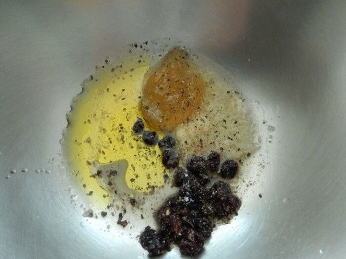 ドレッシングにレーズンを加えほのかな甘みと香りをつけるため10分ぐらいおいて味をなじませます。りんごは甘味と酸味のバランスの良いものを選び塩水につけて変色を防ぎます。