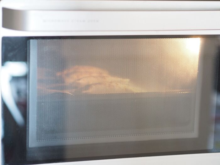 2、1を600Wの電子レンジで3分ほど加熱したら、かき混ぜて再度3分ほど加熱します。