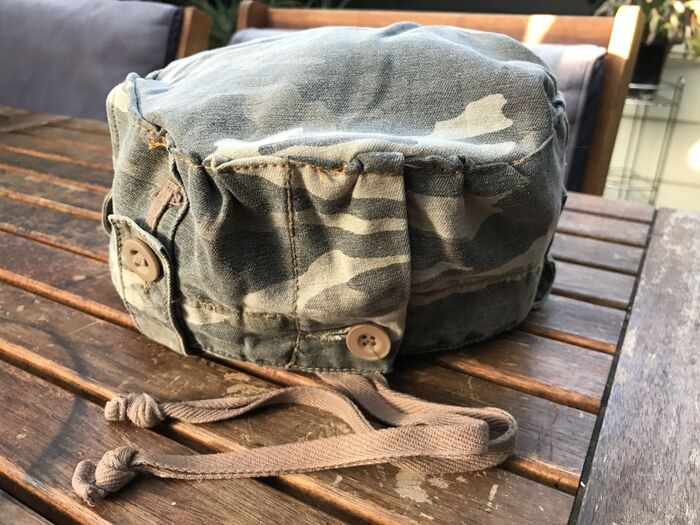 側面はウエスト部分を利用します。パンツの前のボタンを中心に切ります。ファスナーはニッパーで外します。