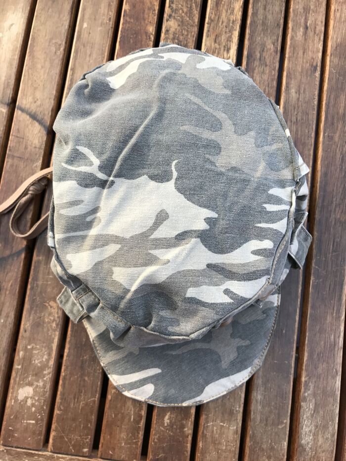 広告などを利用して型紙を作ります。(今回は既製品の合わないダンナ用なので頭周り61cmです)縦22.5cm 横18.5cmの楕円形 縦10cm 横30.5cmの長方形2枚 (縫い代は写真のカラー部分を参考にそれぞれ1.5cmづつとって下さい)