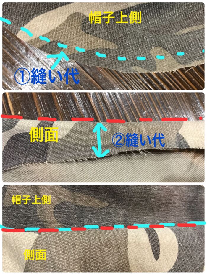 帽子の上側とつばをそれぞれ2枚重ねで切ります。