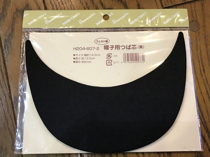 手芸店で購入した帽子用つば芯です。今回はこれを使用しました。