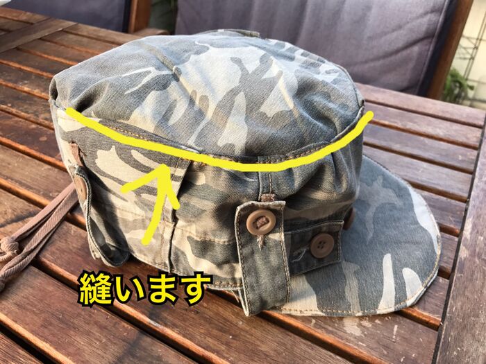 ウエストのベルト部分を利用しているので、帽子の淵の処理は不用です。