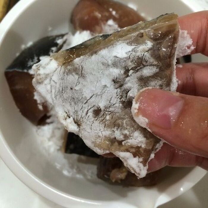 ③②を袋から出して片栗粉を全体にまぶし余計な粉は落としておく。