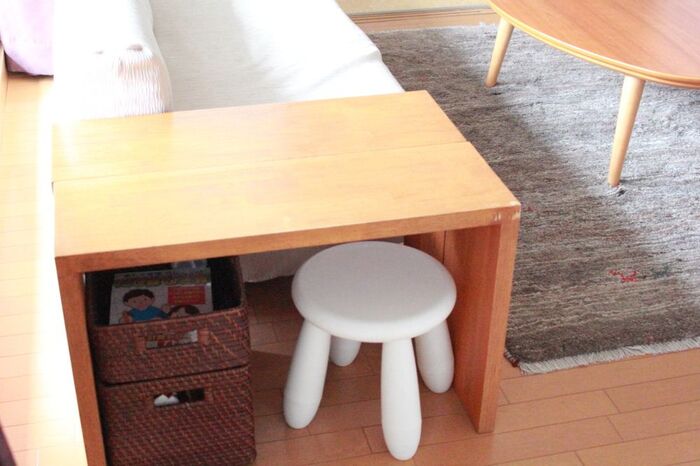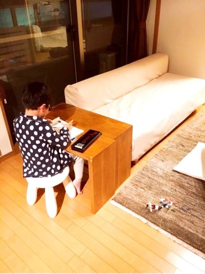 こんなふうに宿題をすると、大人はソファに座って、ゆったりと宿題を見てあげられますね。