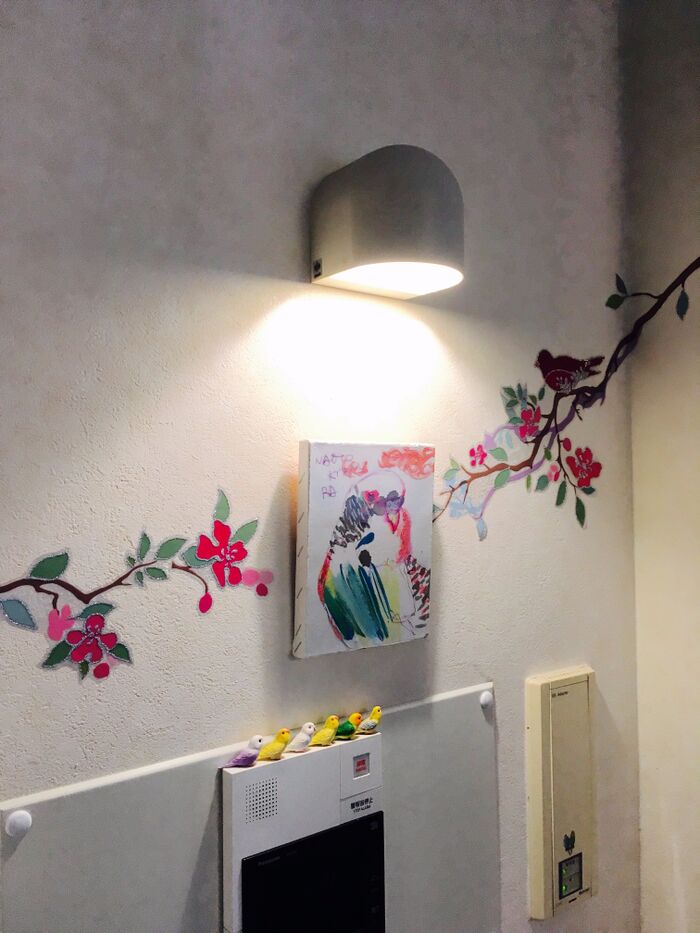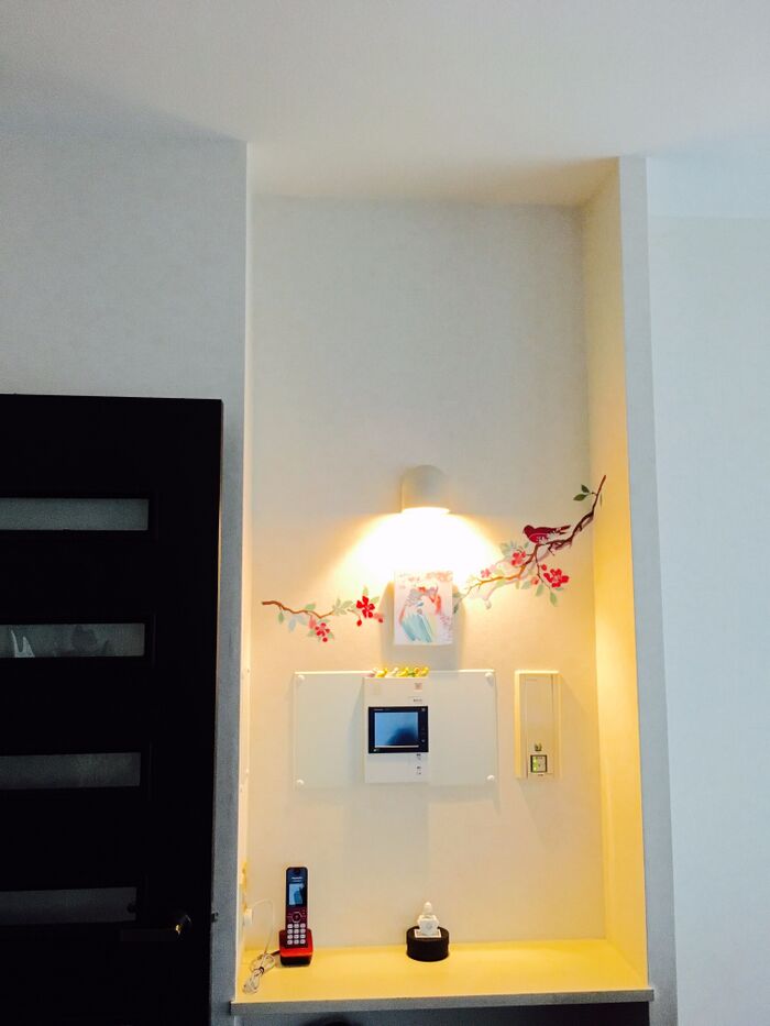 立体的に見えるように、壁の曲がっている部分に沿って貼ってみました。