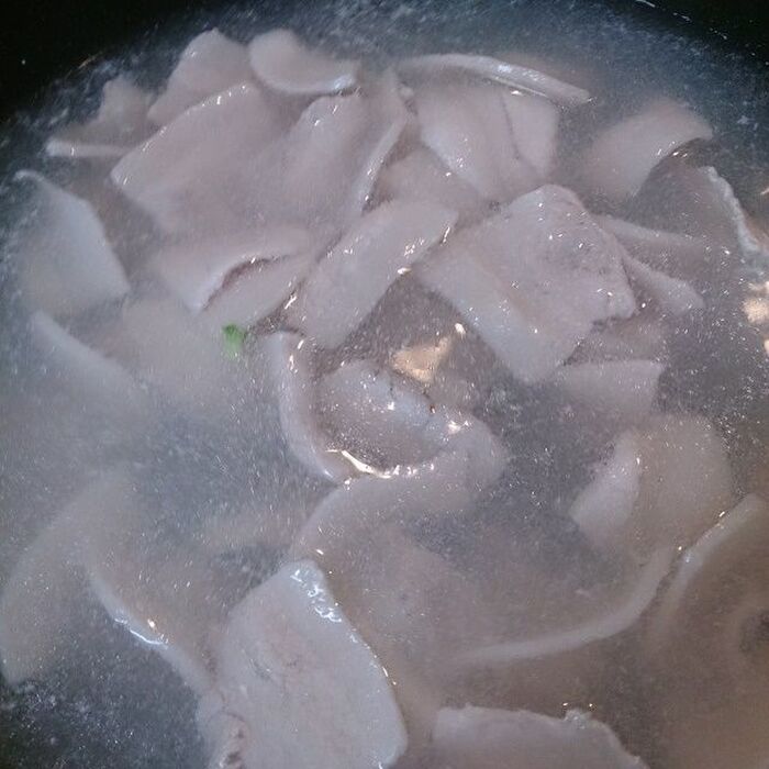 豚小間を茹でます。