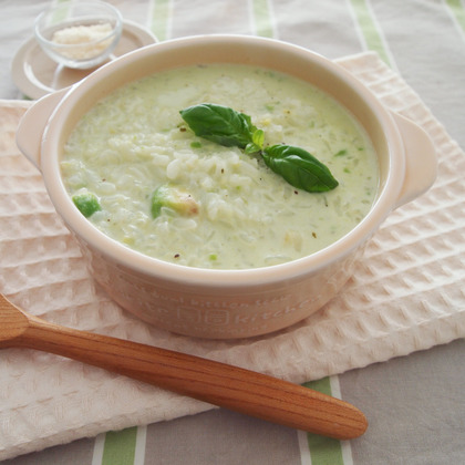 バジルペーストでアクセントを加えたクリーミーなアボカドリゾットです。
