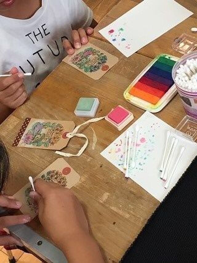 画像は前回のワークショップ(本のしおり作り)の様子です。(保護者の方に許可を撮って撮影させていただきました。)