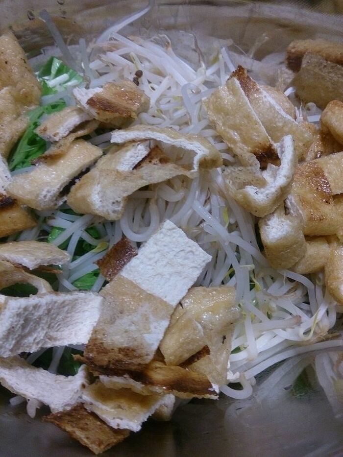 お湯が 沸き始めてきたら 油揚げをお湯に
