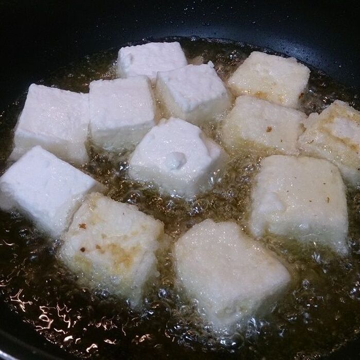 でないと 衣がはがれたり 豆腐が崩れてしまいます。