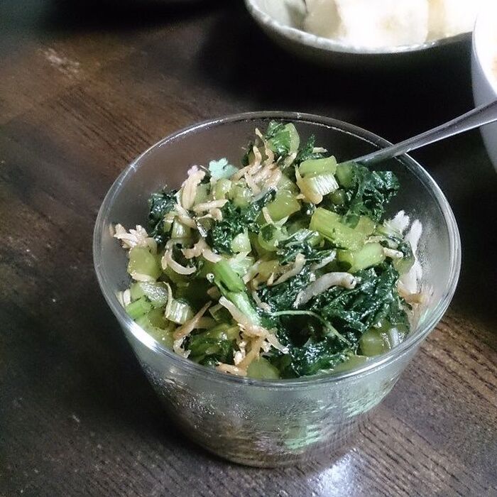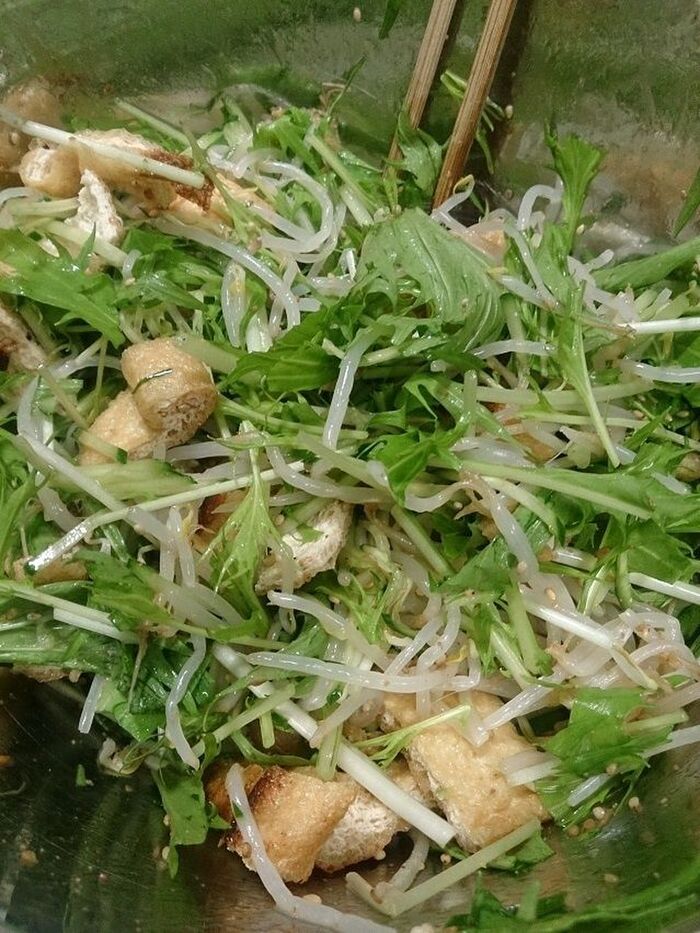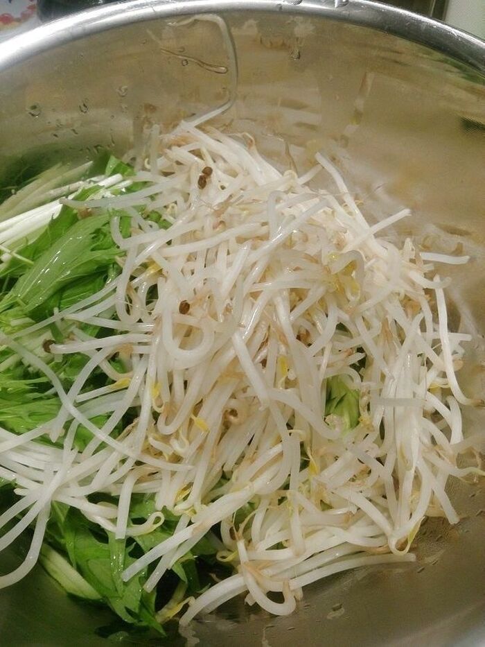 ぽん酢をかけ ボウルで混ぜ合わせます。