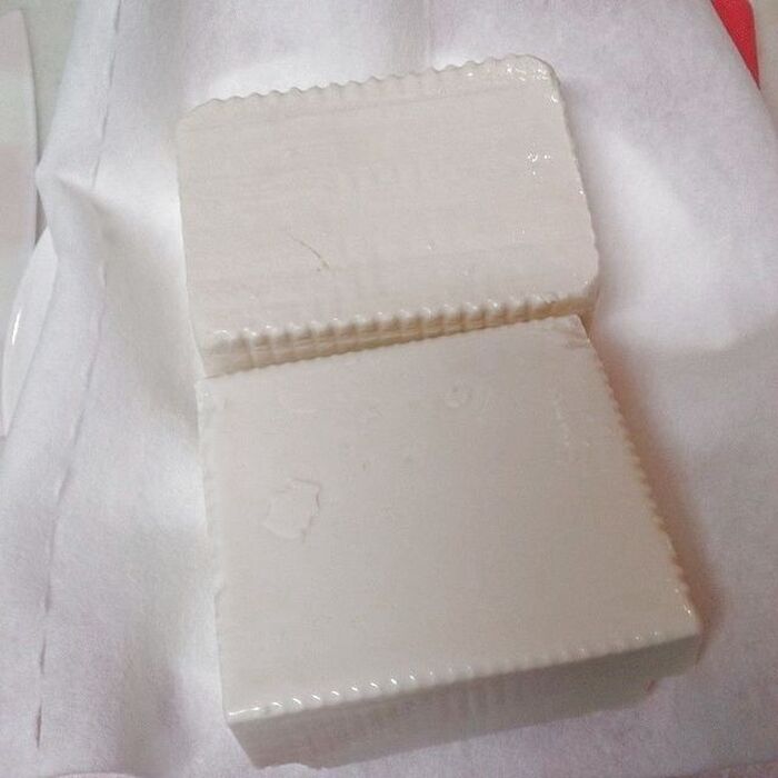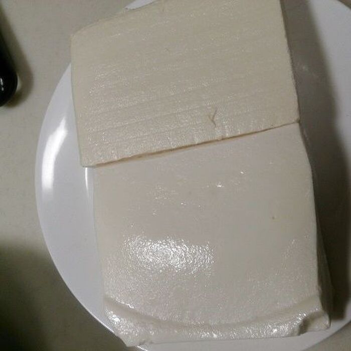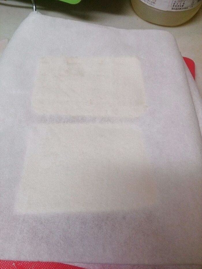キッチンペーパーをお皿に敷き 豆腐をのせます。