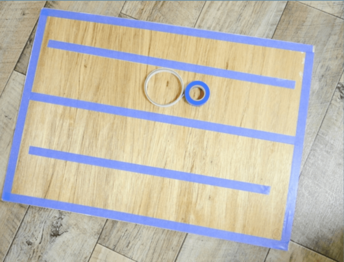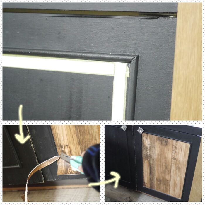 ベニヤ板の裏にマスキングテープと両面テープをつけて扉に貼ります。