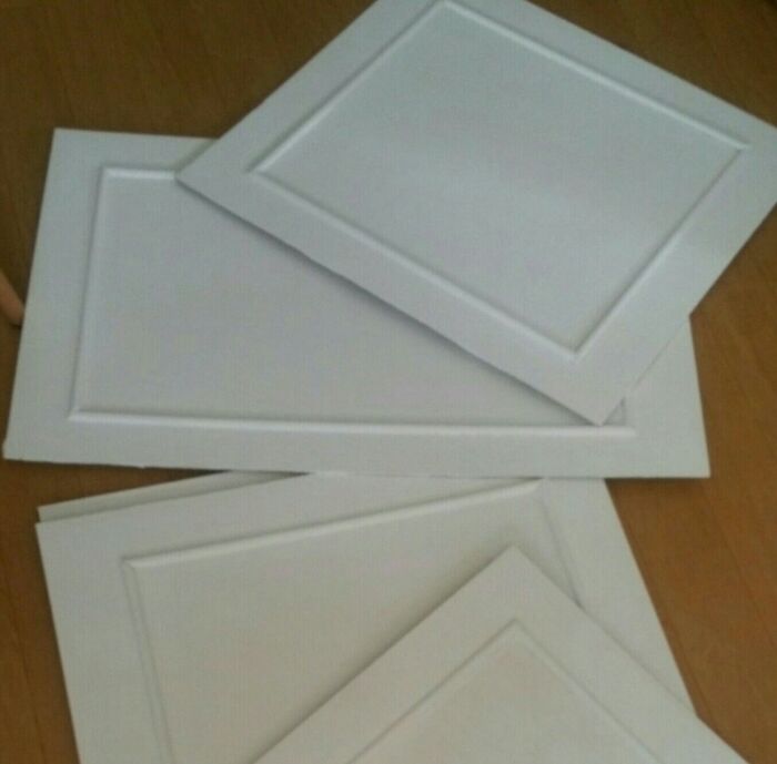 ベニヤ板をホームセンターでカットしてもらい、モールディング風になるように斜め45度にカットした半円工作棒を、ボンドでくっつけ