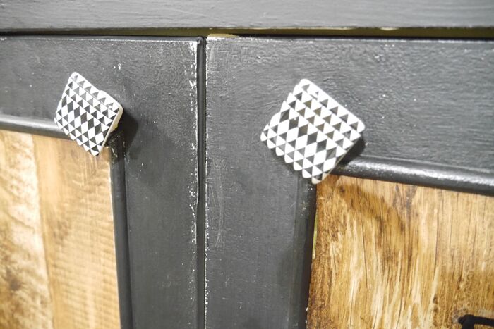 そして今度は黒一色に飽きてしまったので、扉の真ん中にだけ木目調の壁紙を貼って、またまたイメチェンしちゃいました。
