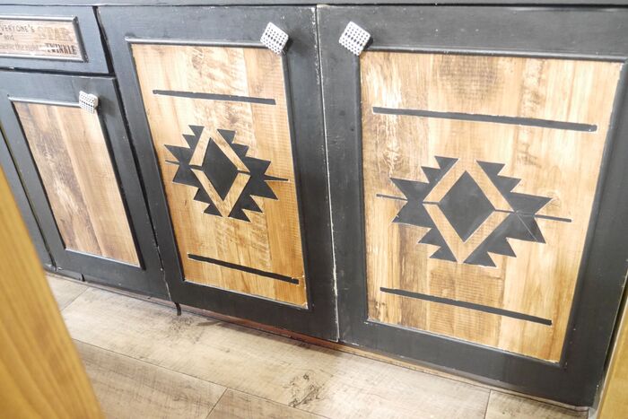 ただのベニヤ板だけでなく、半円工作棒でモールディング風にしたのがポイントです。これだけで高級感が出ます。少しアクセントが欲しくて、オルテガ模様に切り抜いたのもこだわりポイントです!