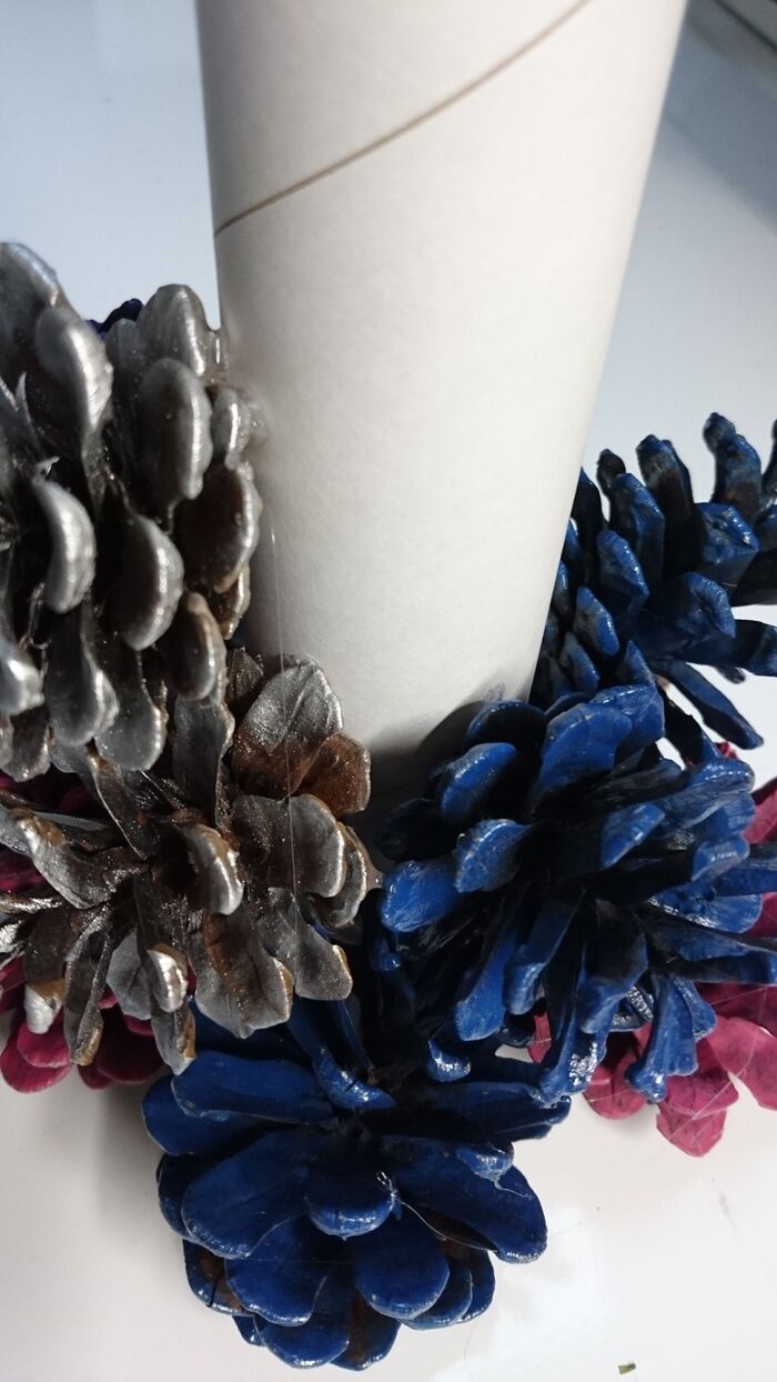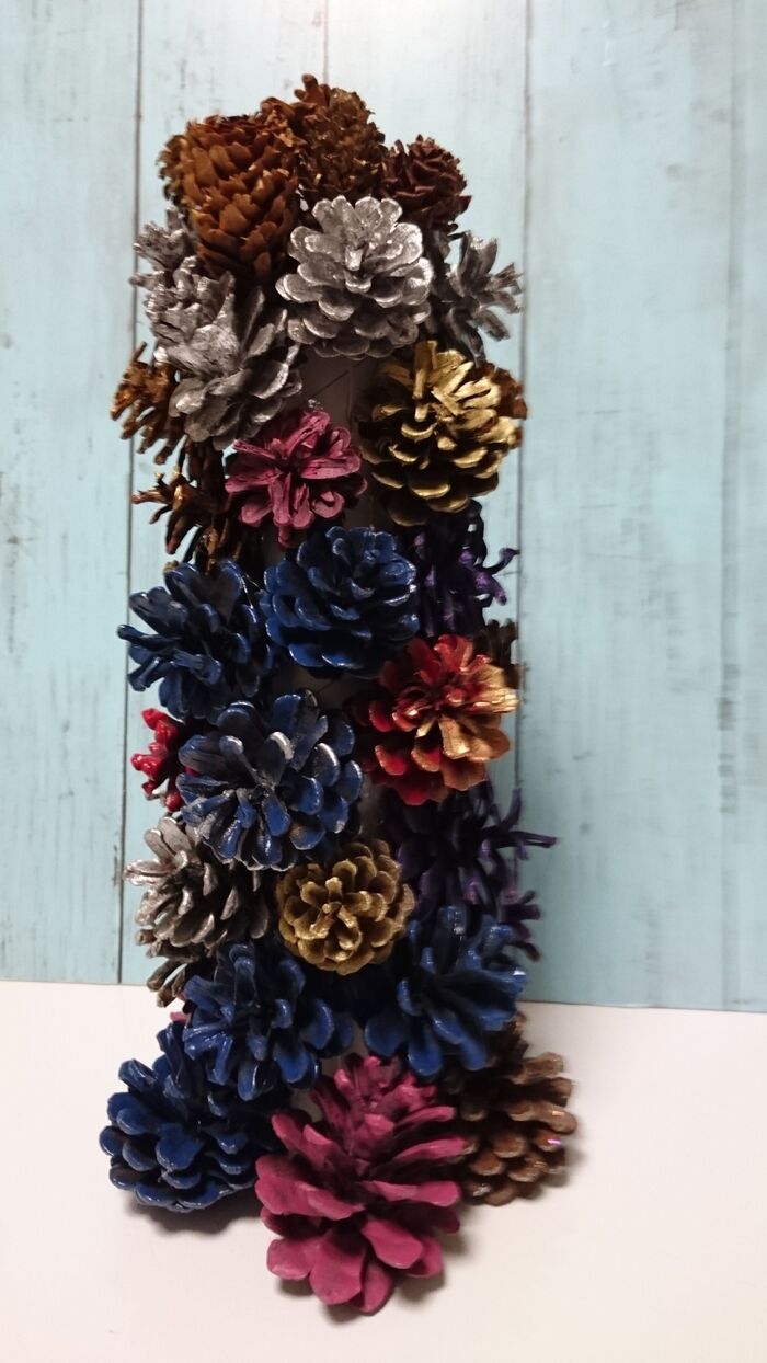家にあった松ぼっくりが、たまたまカラフルな松ぼっくりですが、色が付いてても付いてなくても大丈夫です。