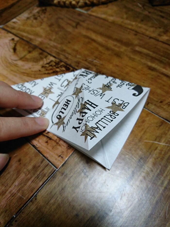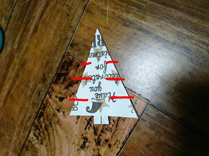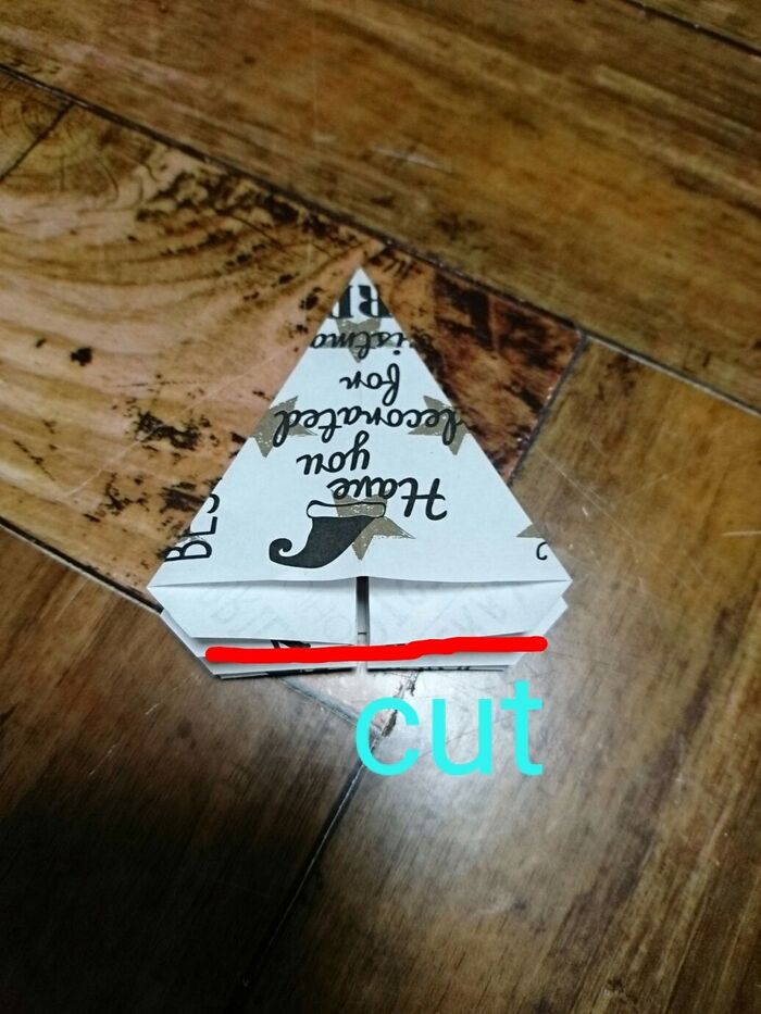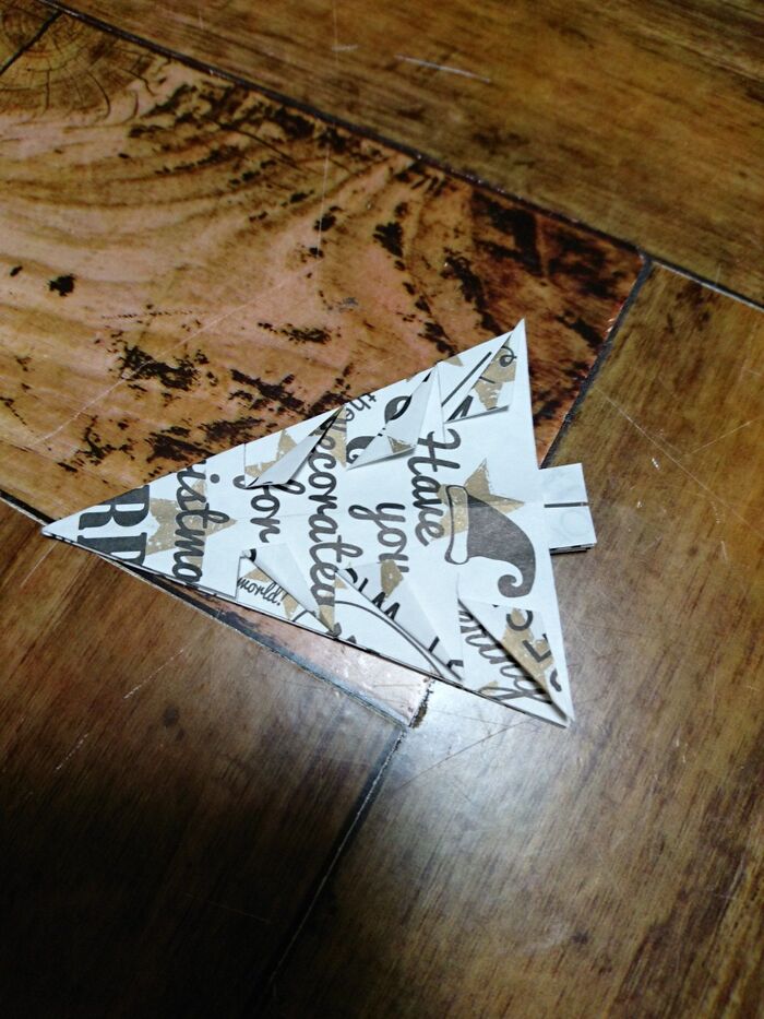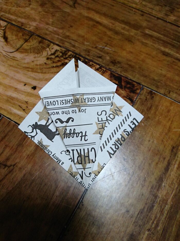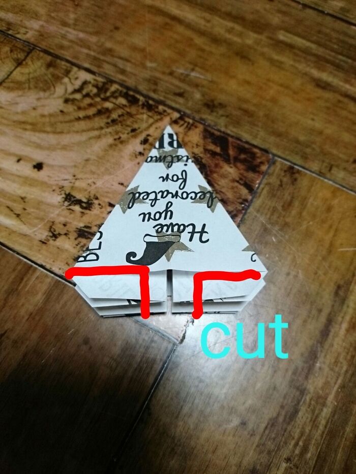 切り込みを入れたとこを三角に折っていく。角がとんがるように折る。