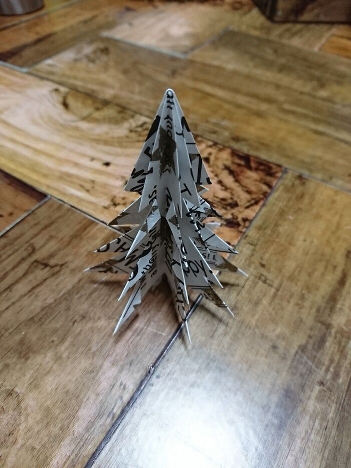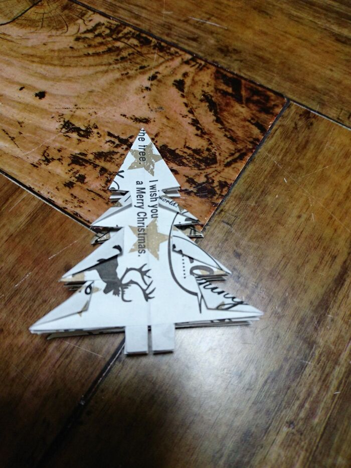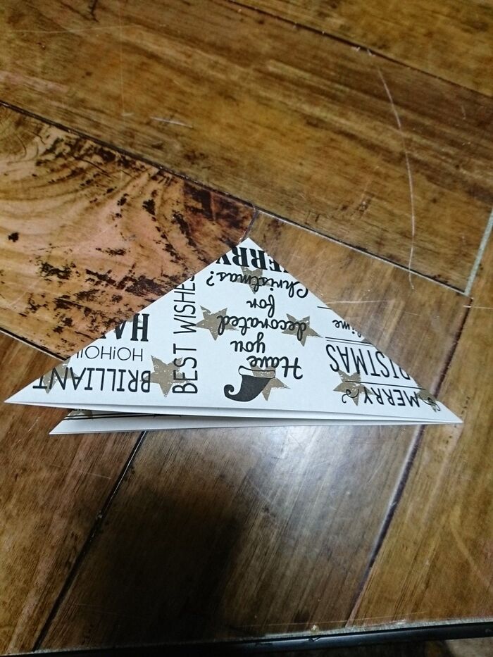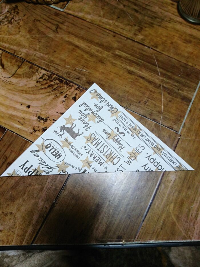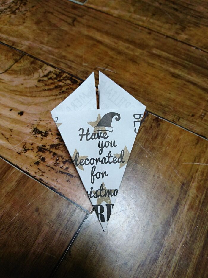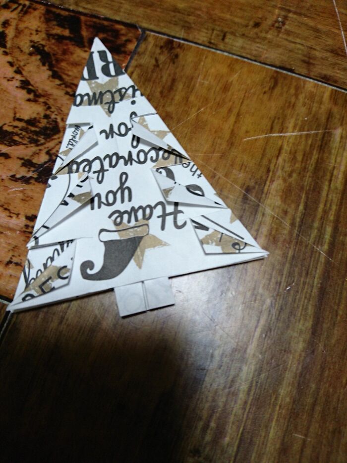 切り込みを入れたとこを三角に折っていく。角がとんがるように折る。