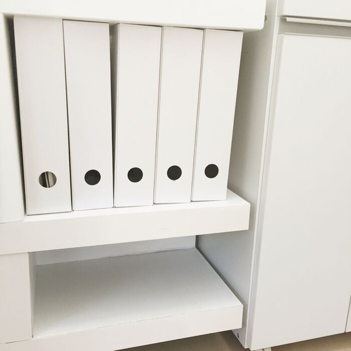 書類の収納には、IKEAのFLUNCEを使用しました。