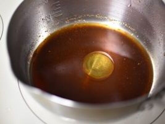 小鍋にごま油以外のマリネ液の材料を入れて火にかけ、フツフツとしてきたら火を止めごま油を入れて混ぜる。