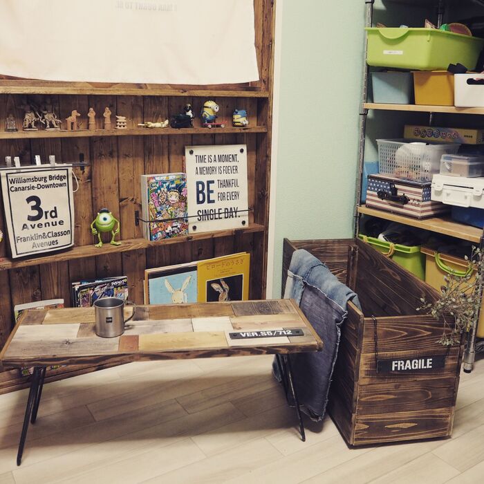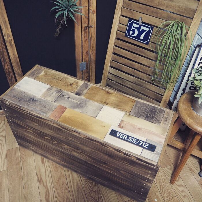まだまだ端材があまっていたので、折り畳みテーブルに合わせて収納BOXも作りましたよ。