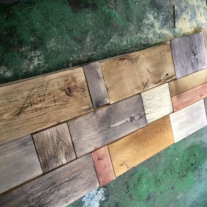ベースとなるベニヤに端材を並べ、バランスを見てシュミレーションします。