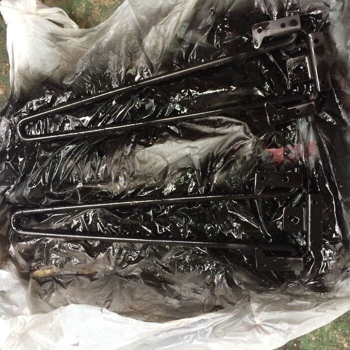 元の脚はテカテカのシルバーでしたので、プライマーをしてからブラックのアクリルスプレーで塗装しました。