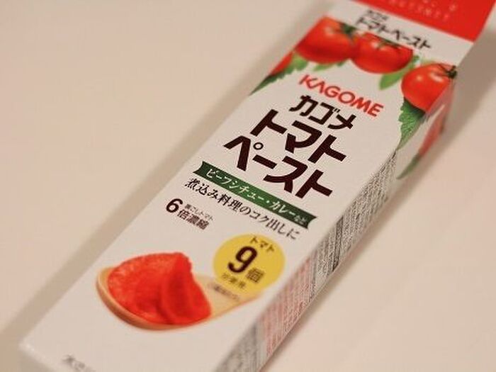 玉ねぎが透き通るくらい炒めたら、水とトマトペーストを入れる。あくを取ったら火を止め、カレールーを入れる。