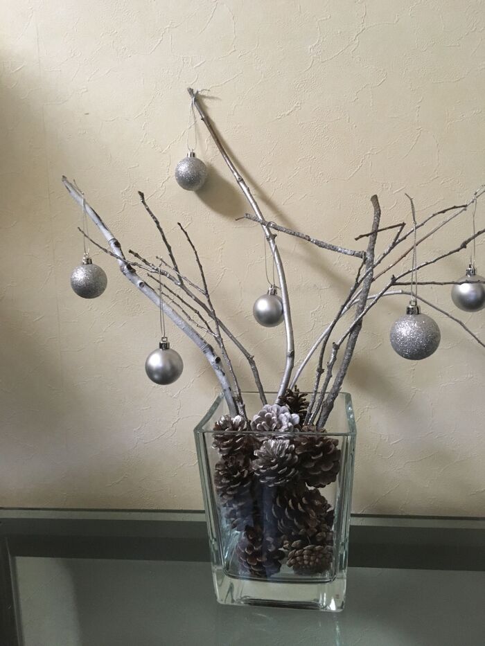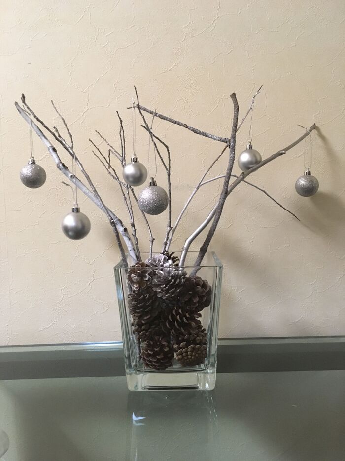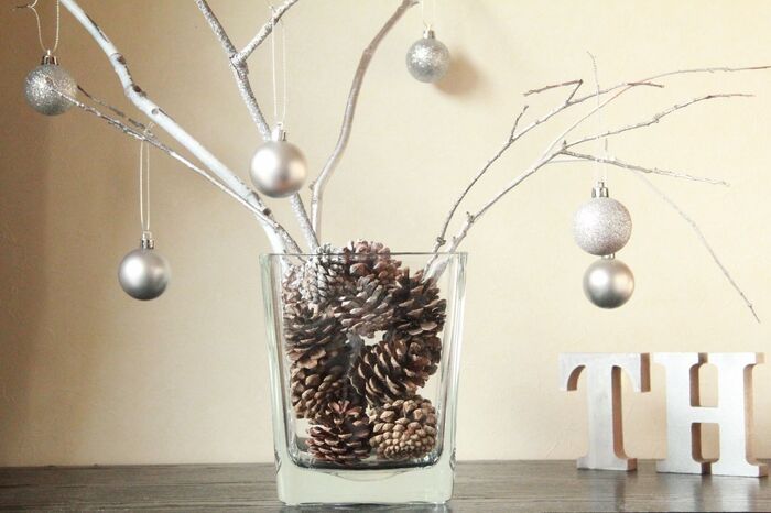 オーナメントやスプレーの色で雰囲気も変わるので、お好みの枝ツリーをぜひ作ってみてください♡