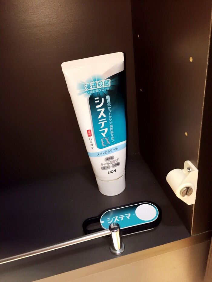 我が家は恥ずかしながら歯磨き粉出しっ放しなので、こうやってそばに置いておくのが一番勝手がよさそうです…