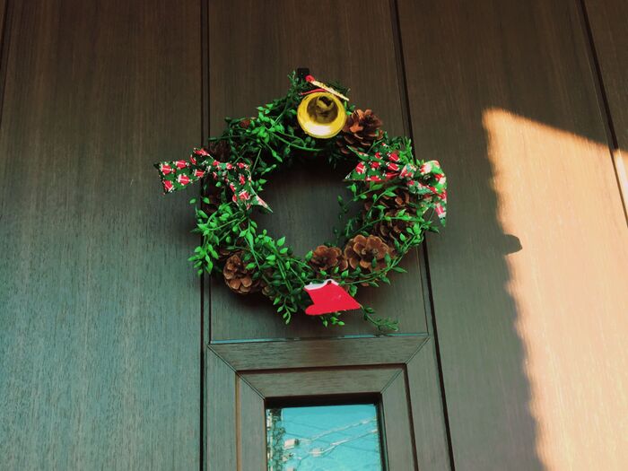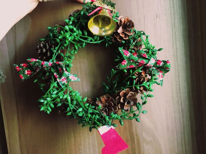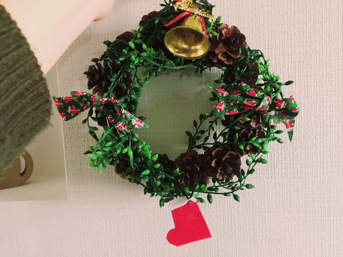 リースの大きさや種類はお好みで。シンプルなもののほうが、飾りを楽しめますよ♫