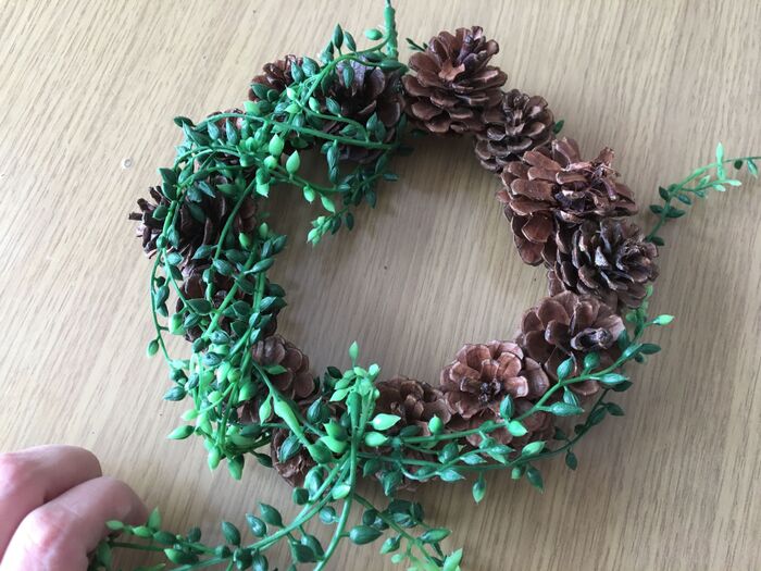 何本かある半分くらいをとり、リースにぐるっと這わせます。