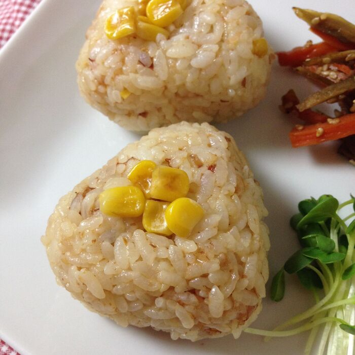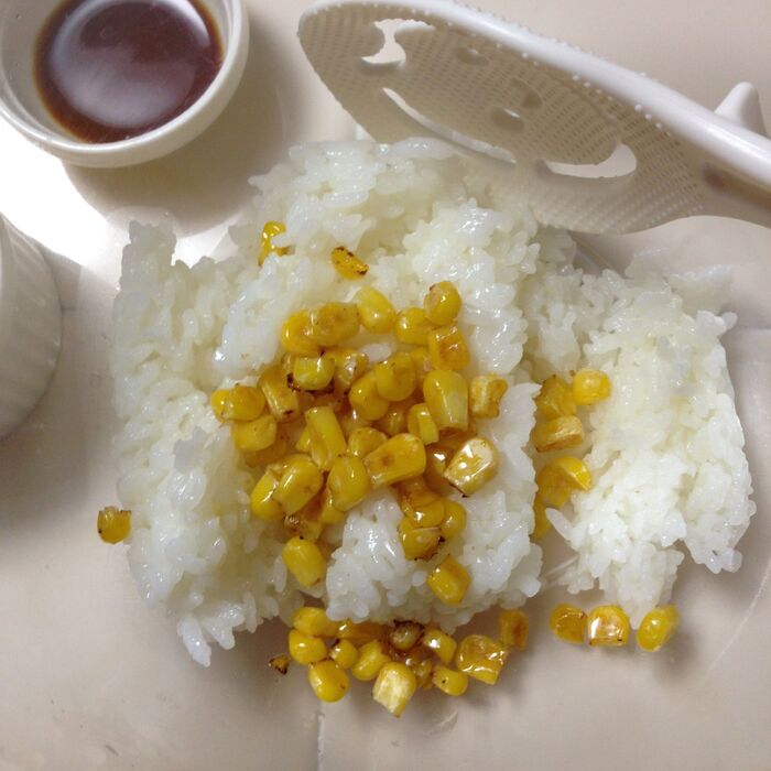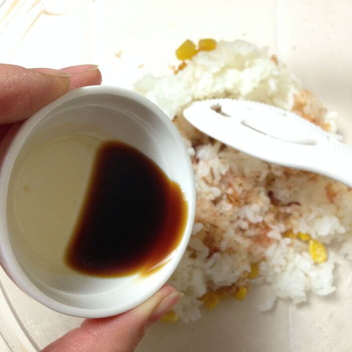 ②温かいごはんをボウルに入れ、①のコーンを加えて混ぜ合わせます。