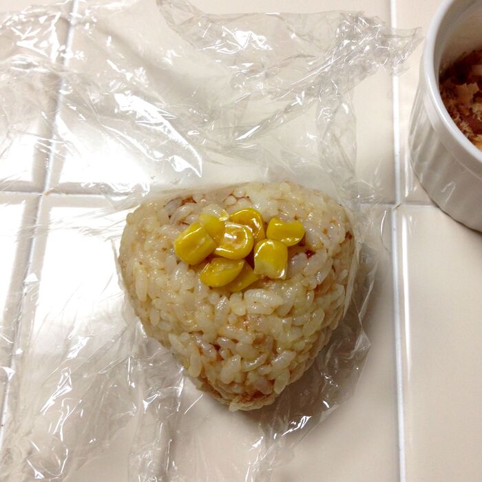 ④ラップの上に1/2量の③をのせ、おにぎりにして出来上がり。