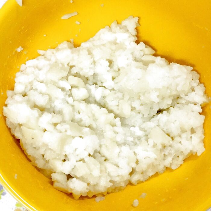 細かく刻んだ、残りのちくわぶを混ぜて、