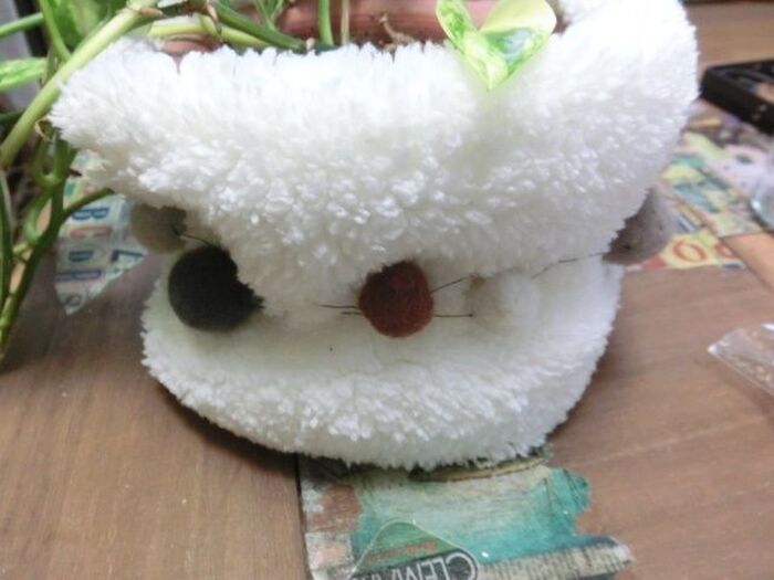 キッチンは、明るい方が良いので、白を選びましたが、ボアネックウォーマーが、温もりを感じさせてくれますね( *´艸`)白い冬のイメージで、しっくり来てると思います。グリーンポットカバーも、季節によって衣替え?楽しいかも知れません♪小さいサイズのポットなら、モコモコソックスなどでも、可愛くなるかも…。