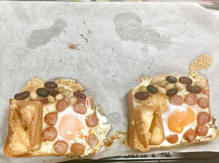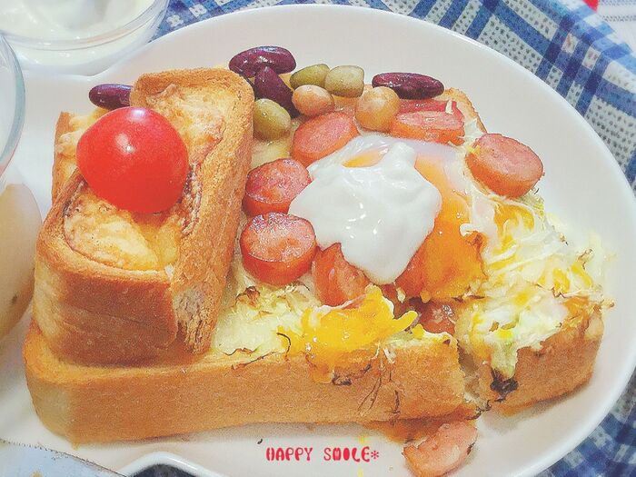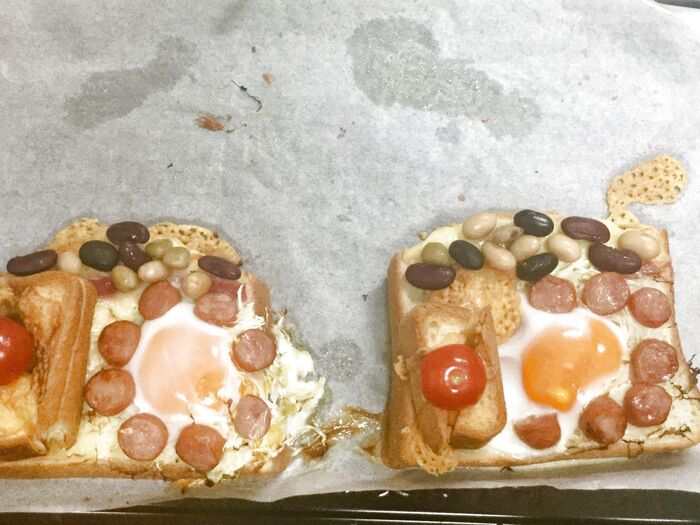 子供も夢中になって食べ終えるトーストになりました(๑˃ ᗜ ❜⃘⃘๑)♡‧*˚✧