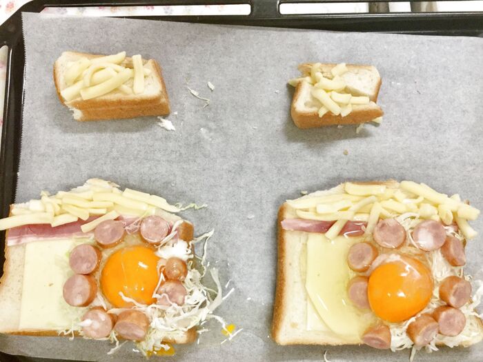 ※右のトーストは、チーズが焼けて、