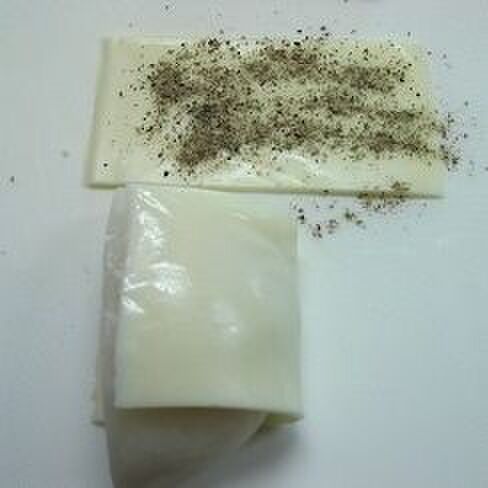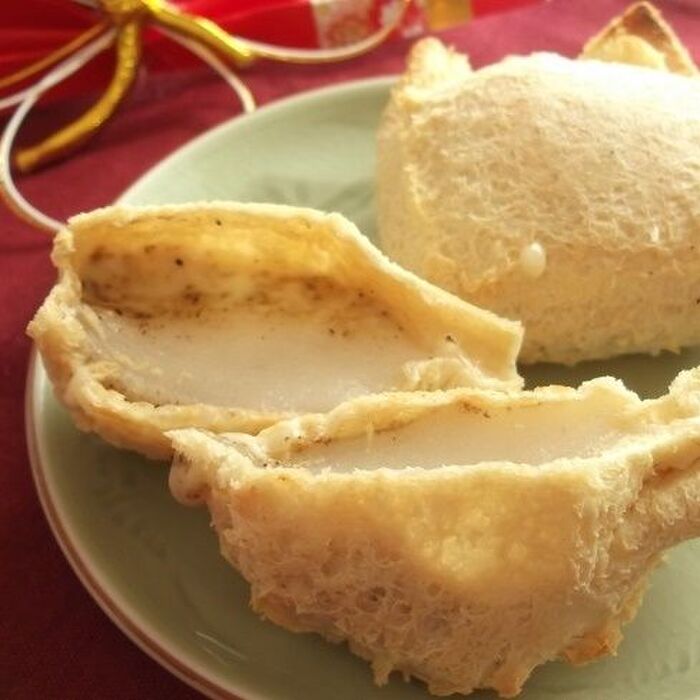 ひっくり返したうす揚げにチーズ巻き餅を入れ