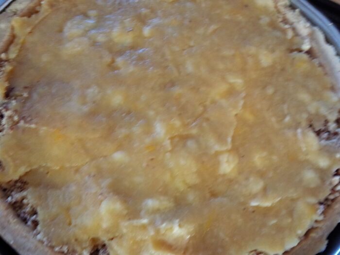 空焼きしたタルト生地にフードプロセッサーにかけたナッツを敷く。