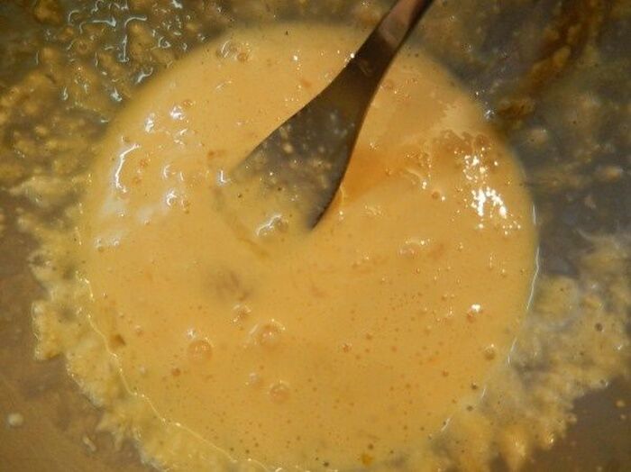 ボウルに卵と豆乳クリーム チーズを加え 軽く塩・コショウしよくかき混ぜる