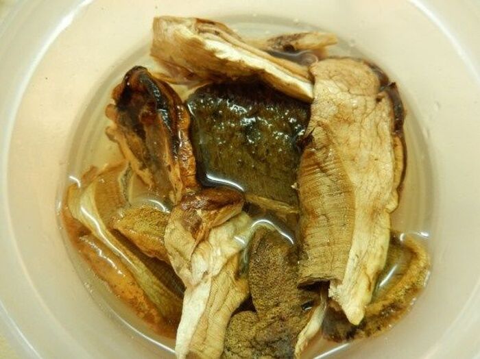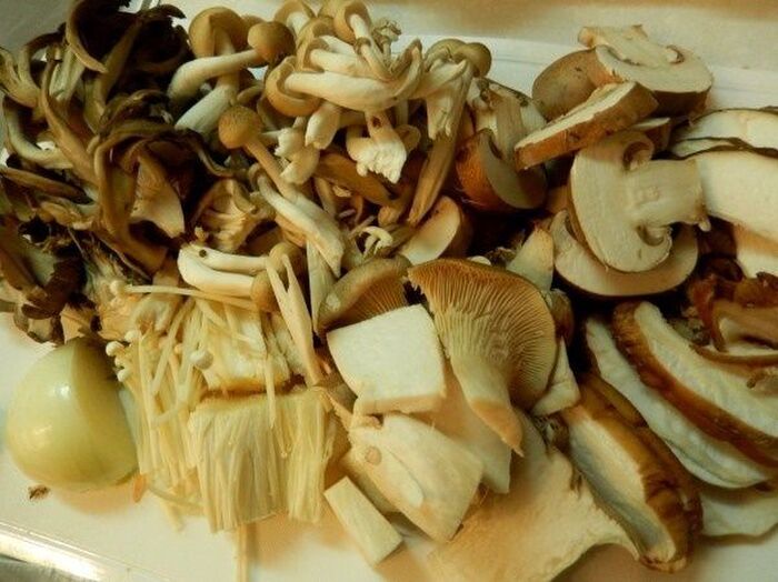 きのこ類は汚れを落とし同じぐらいの大きさに揃え ポルチーニはひたひたのぬるま湯に10分ぐらいつけて戻す