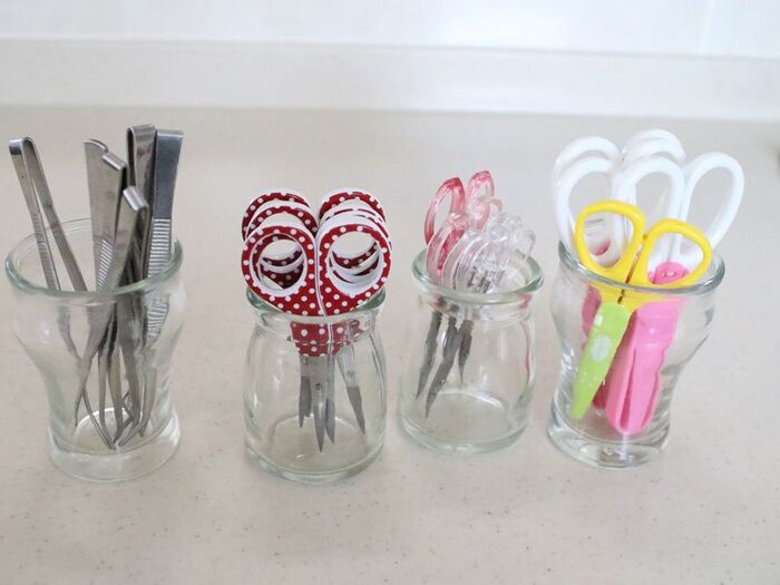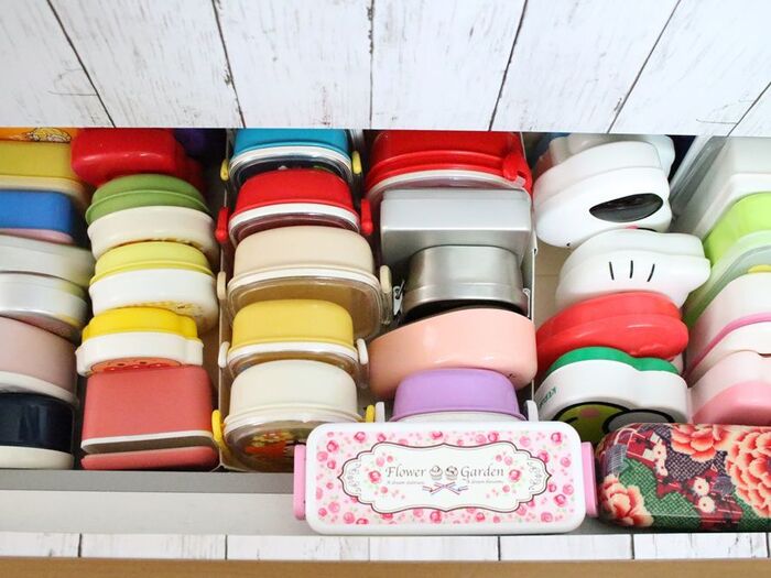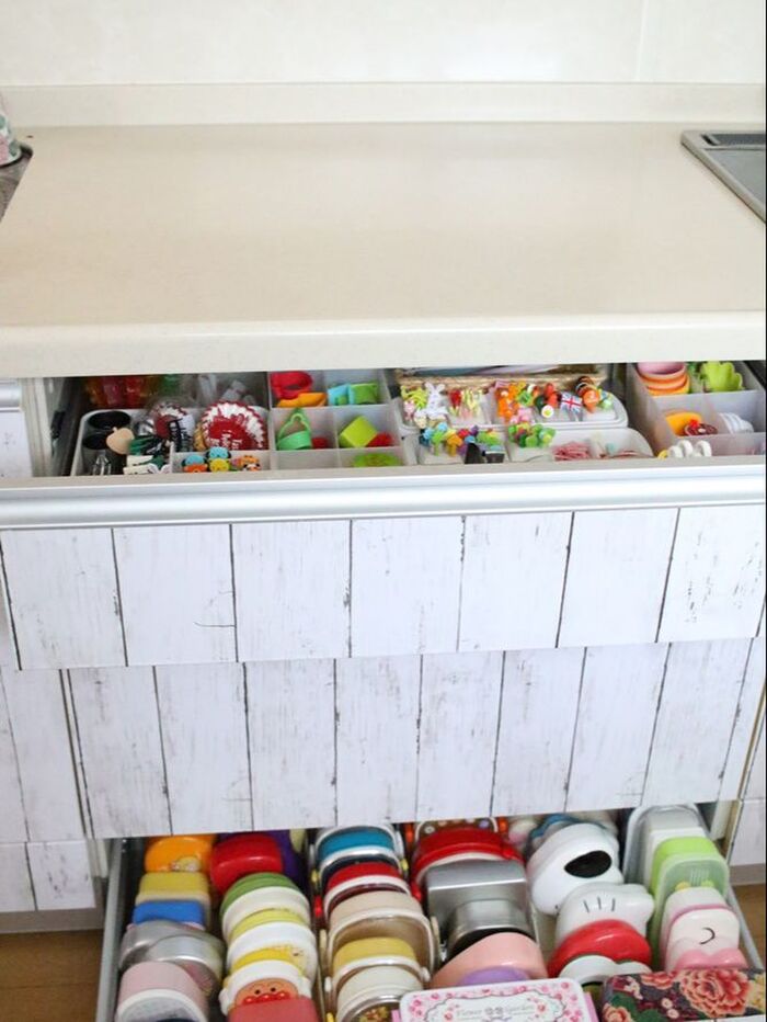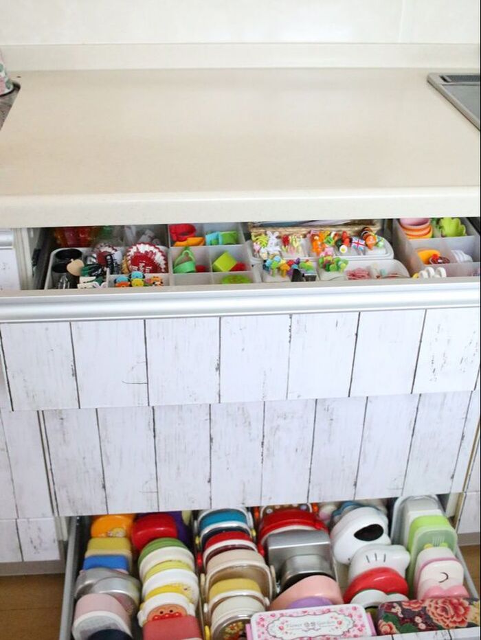それぞれ系統分けして空き容器や100均容器に収納しています。