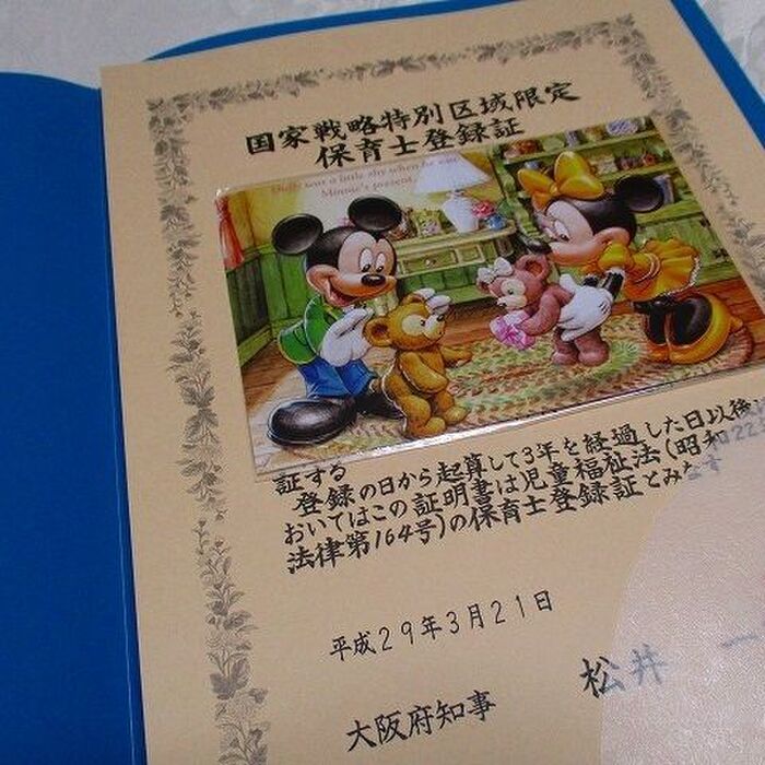保育士登録証♪名前はミッキーのポストカードで隠しています