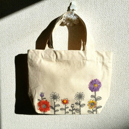 絵をですような感じで、バッグにボンドを塗っていきます。画像は参考までに。文字を描いても良いですね。