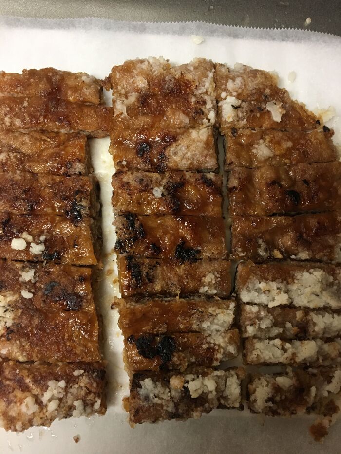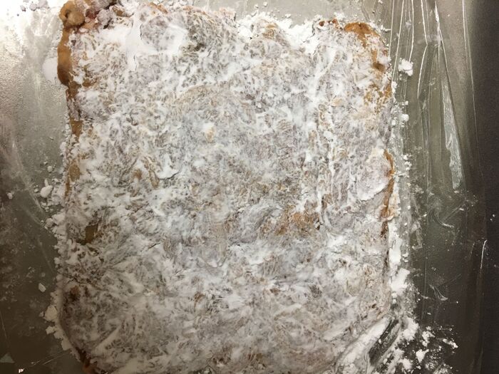 醤油、生姜、蜂蜜で味付けした豚肉を片栗粉の上にのせます。