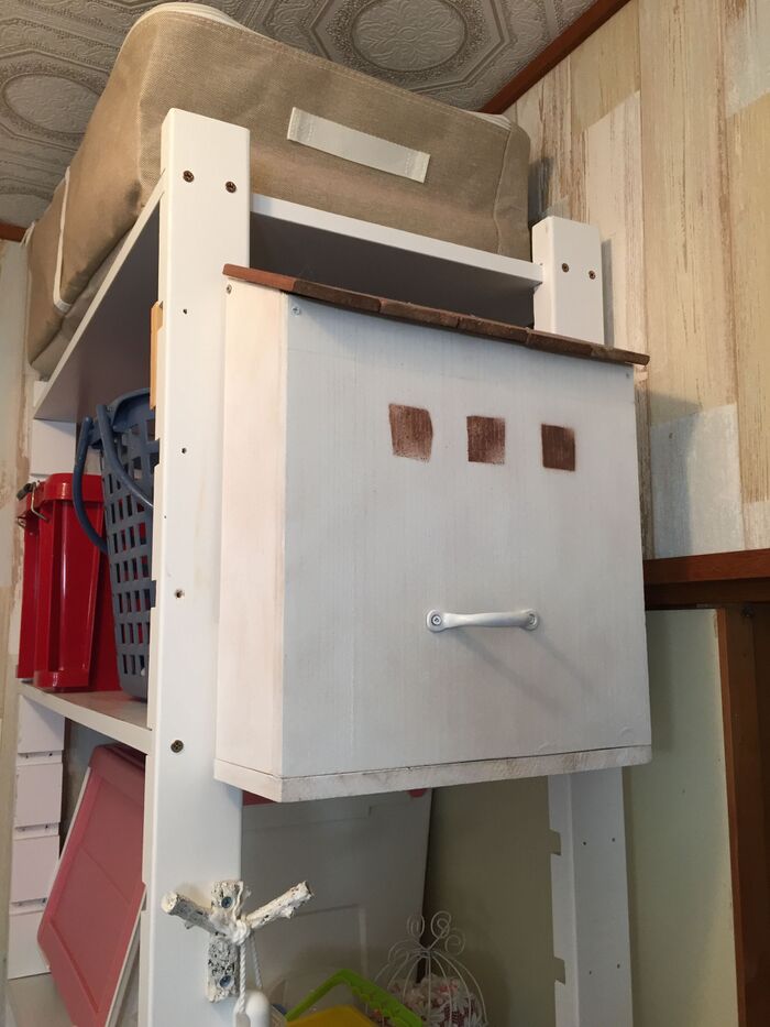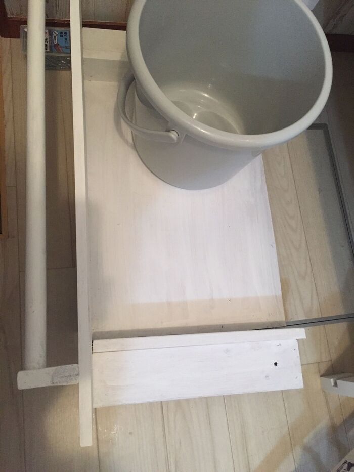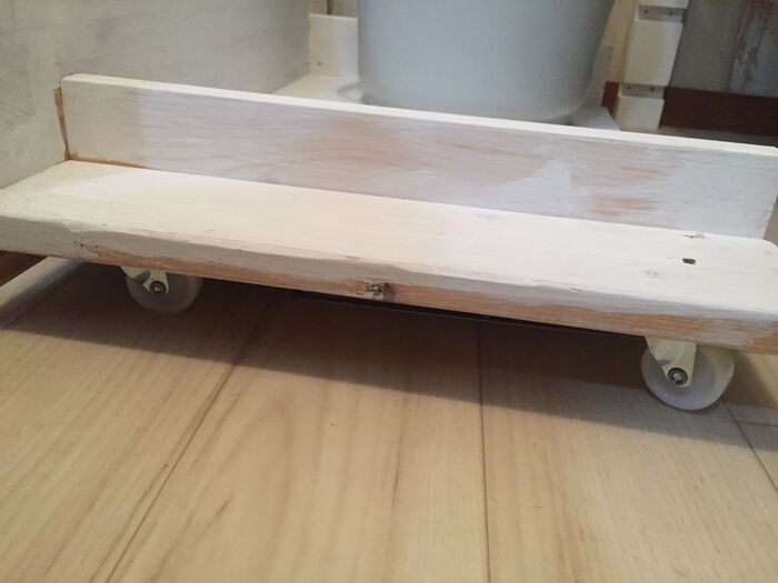 上がってしまうため、サイドの板を変えてサイドの板を上げてキャスターを付けています。