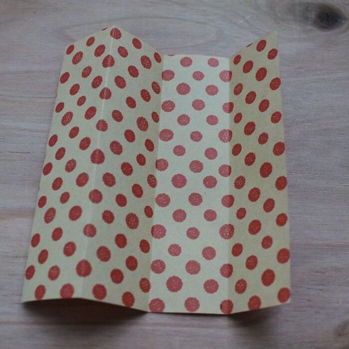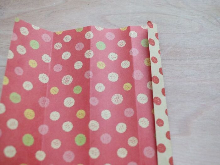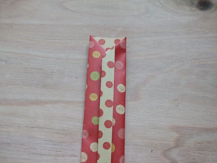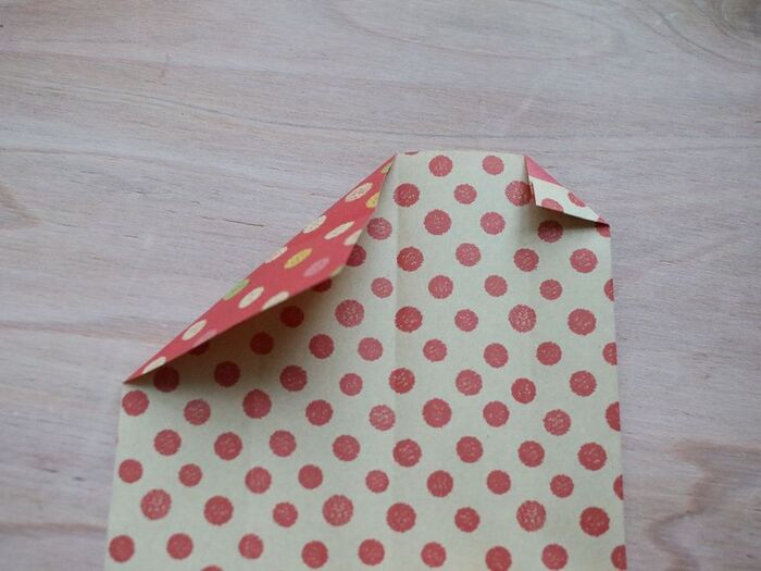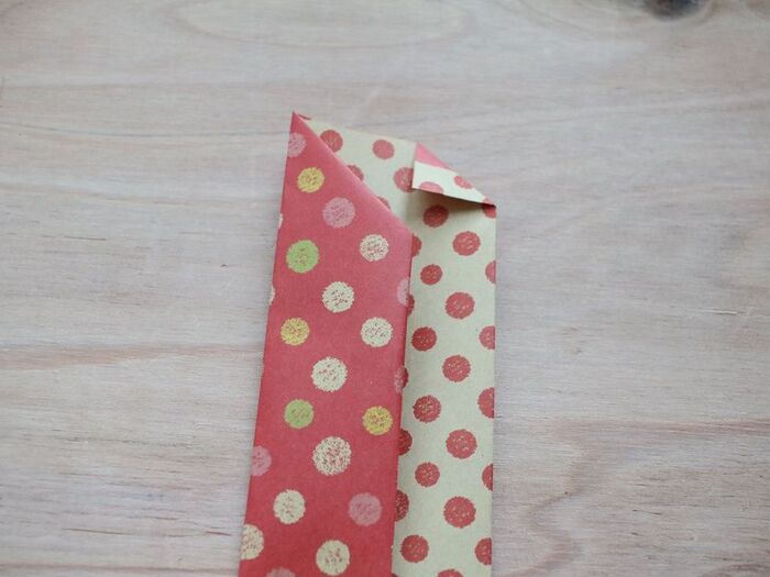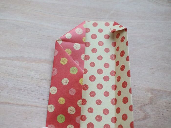 右側折り線に沿って反対側も重ねて下の部分を裏側に折り曲げる。